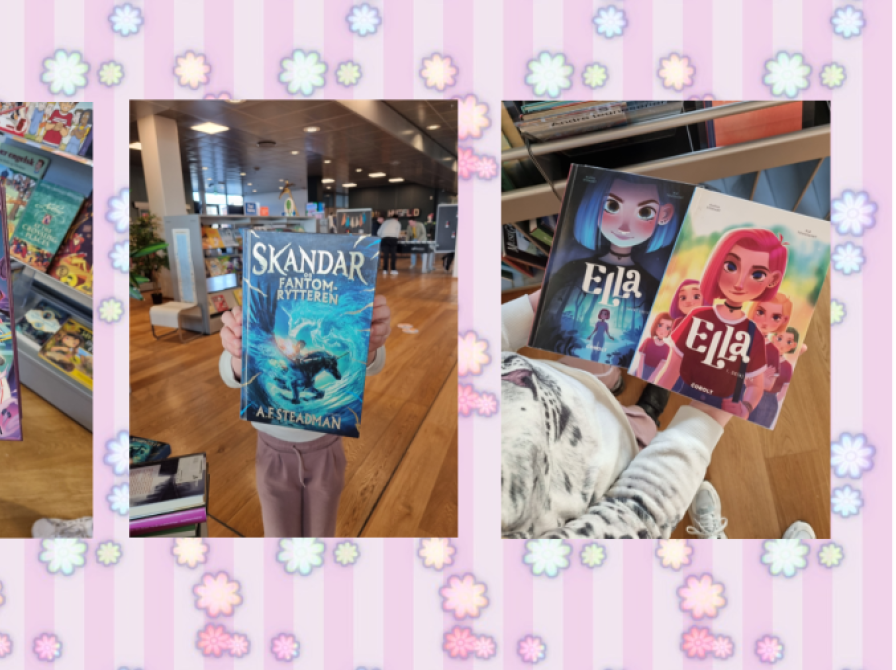 Børnene i børnebibliotekets bogklub for børn fra 9-12 år, Bogmestrene, er mestre i at sluge saft og snacks til bogklubmøderne, men de er endnu bedre til at sluge bøger. Mynte og Anna fra bogklubben har givet os en guidet tur gennem børnebiblioteket for at udpege nogle af deres yndlingsbøger på hylderne.