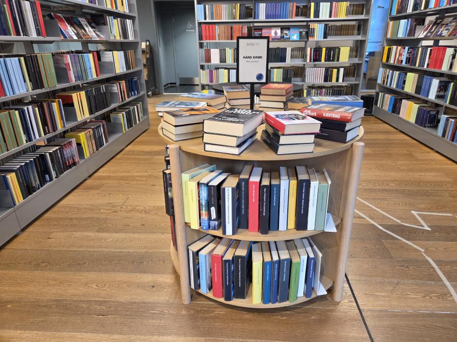 Udstillingsbord 17 på Kolding Bibliotek har altid temaet "Hårde Krimier", her kan du græsse og finde alle de rå, blodige og voldelige krimier du har lyst til